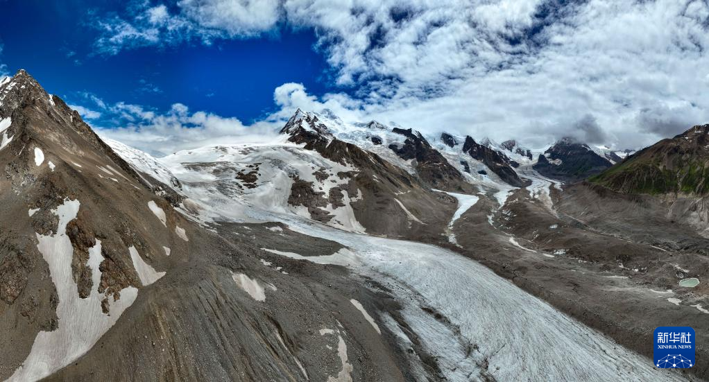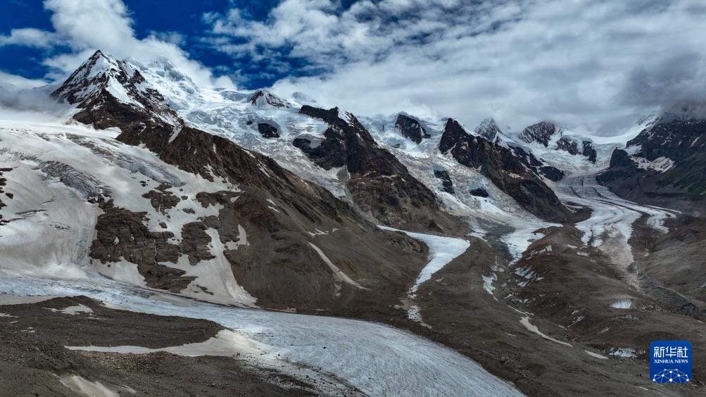 空中俯瞰祥格拉冰川(7月20日摄,无人机照片)。