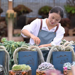 2023年,在周宁县花卉产业发展政策的扶持下,刘林租下浦源镇“花鲤小镇”花卉基地10多亩闲置大棚,成立公司专业从事多肉植物种植技术研发、育种、设计造型、参观研学等业务,种植的多肉植物多达200多个品种。近年来,在周宁县“美丽庭院+花卉”发展模式的引导下,刘林将自己的多肉盆栽推广到当地多个农家小院,带动更多乡亲参与到这项美丽的致富事业中来。“从一方阳台到满园希望,从一个人的爱好到一群人的路,我希望能带动更多乡亲将日子过得像多肉一样饱满、多彩。”刘林说。
