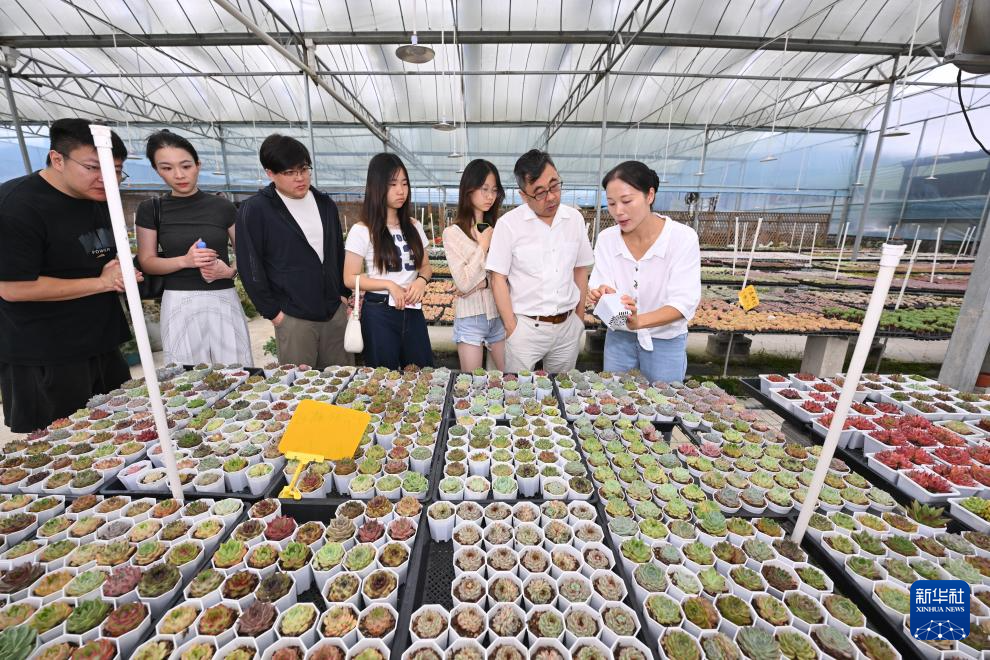 时值暑期旅游旺季,走进福建周宁静宇园艺有限公司多肉种植大棚,一盆盆形态各异的多肉植物憨态可掬,公司负责人刘林正忙着接待一批又一批前来参观、研学的客人。