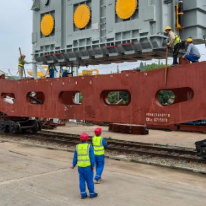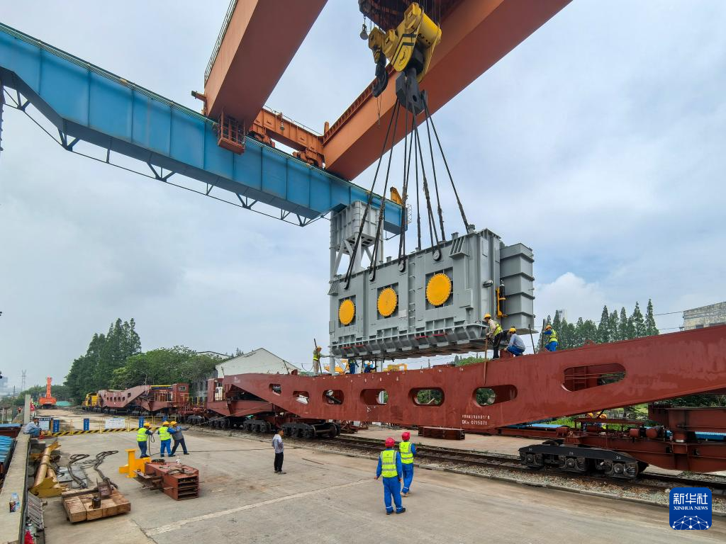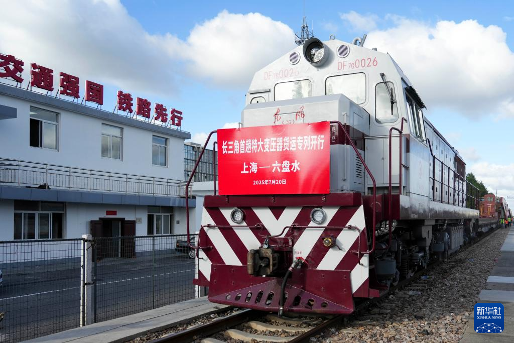 7月20日晚,载有两台单体重量达330吨特大型变压器的货运专列从上海闵行站开出,驶往贵州省六盘水市,标志着长三角铁路首次特大型变压器运输顺利启动。