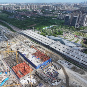 新建上海至南京至合肥高铁南通站站房施工稳步推进