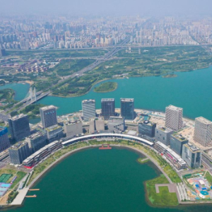 这是7月15日拍摄的郑州龙湖金融岛(无人机照片)。
