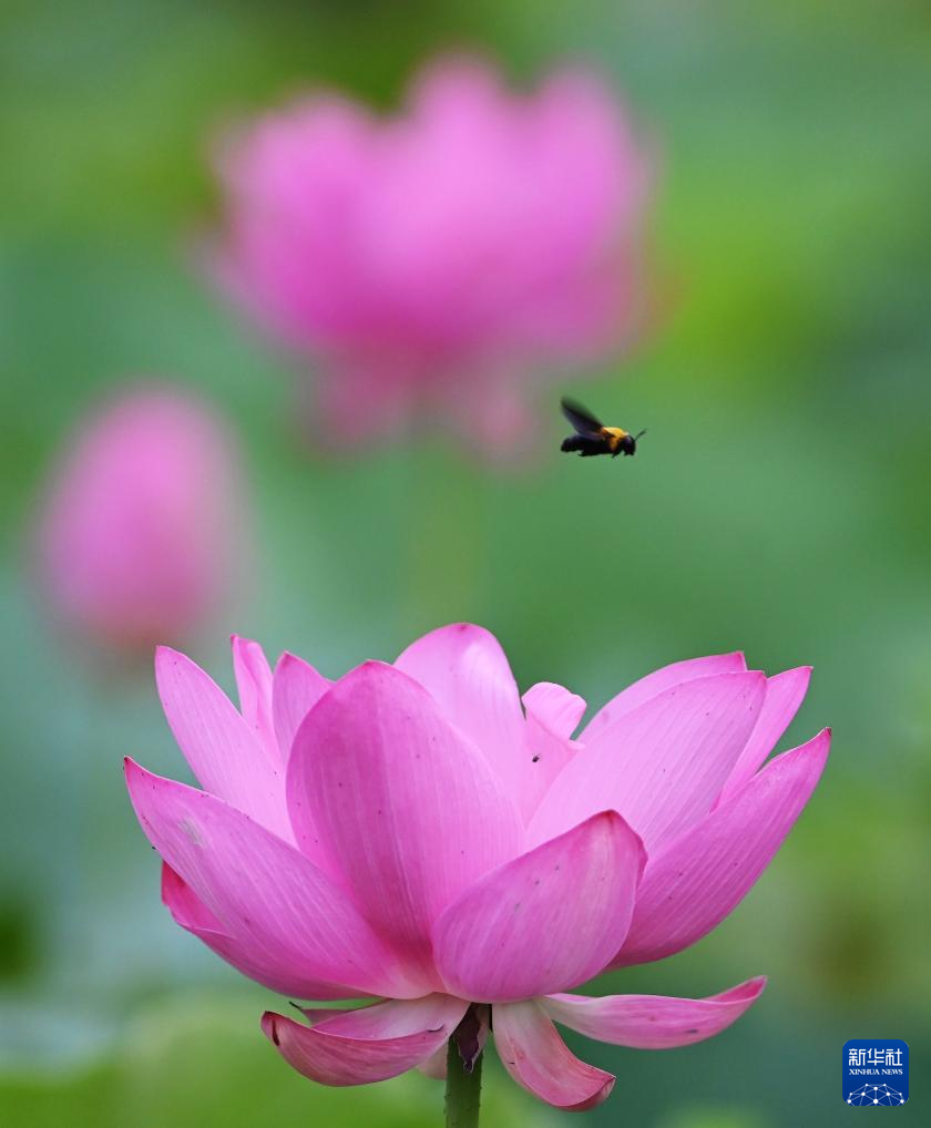 当日是大暑节气。荷花绽放,为炎炎夏日带来一丝清凉。