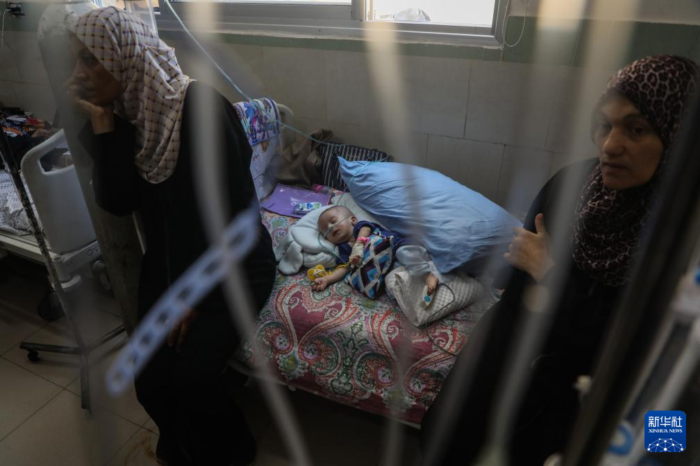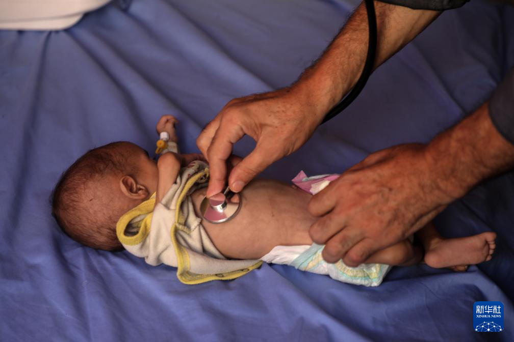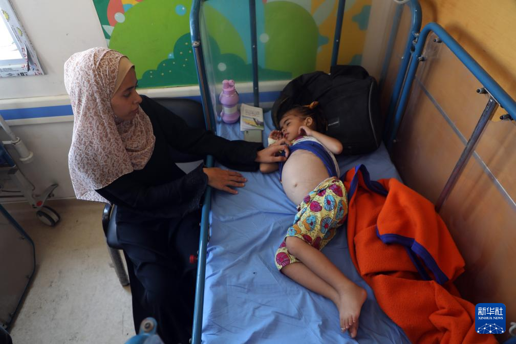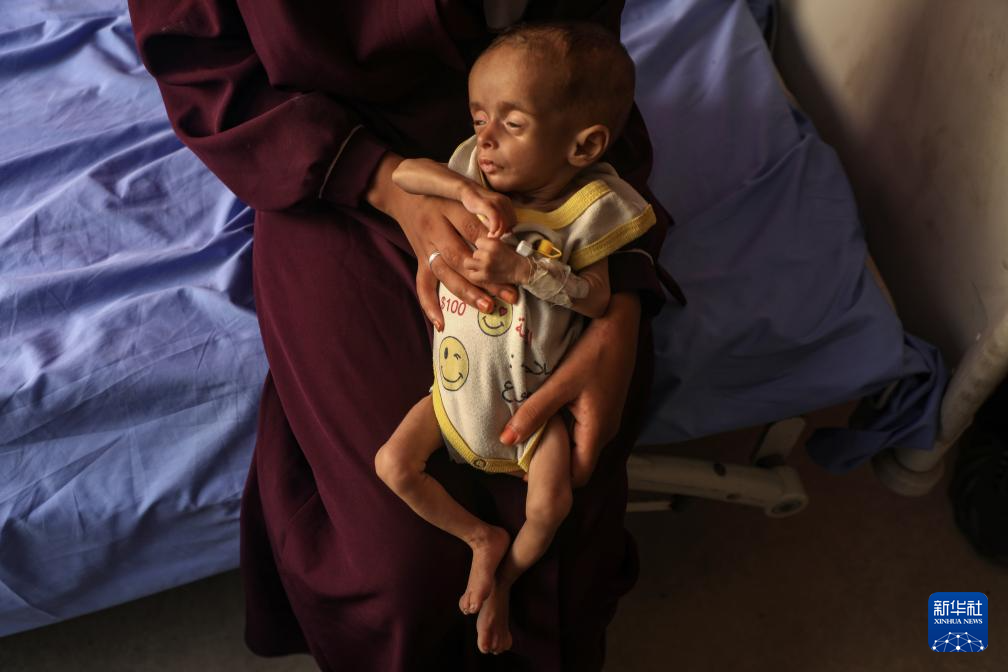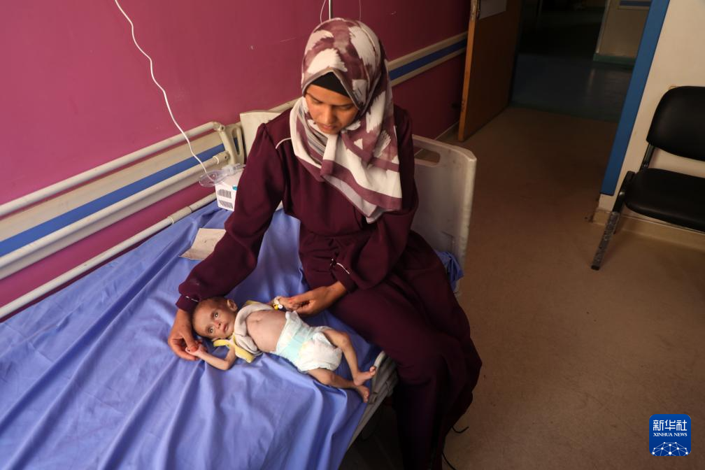 7月23日,在加沙城一所医院里,一名女子照顾营养不良的儿童。