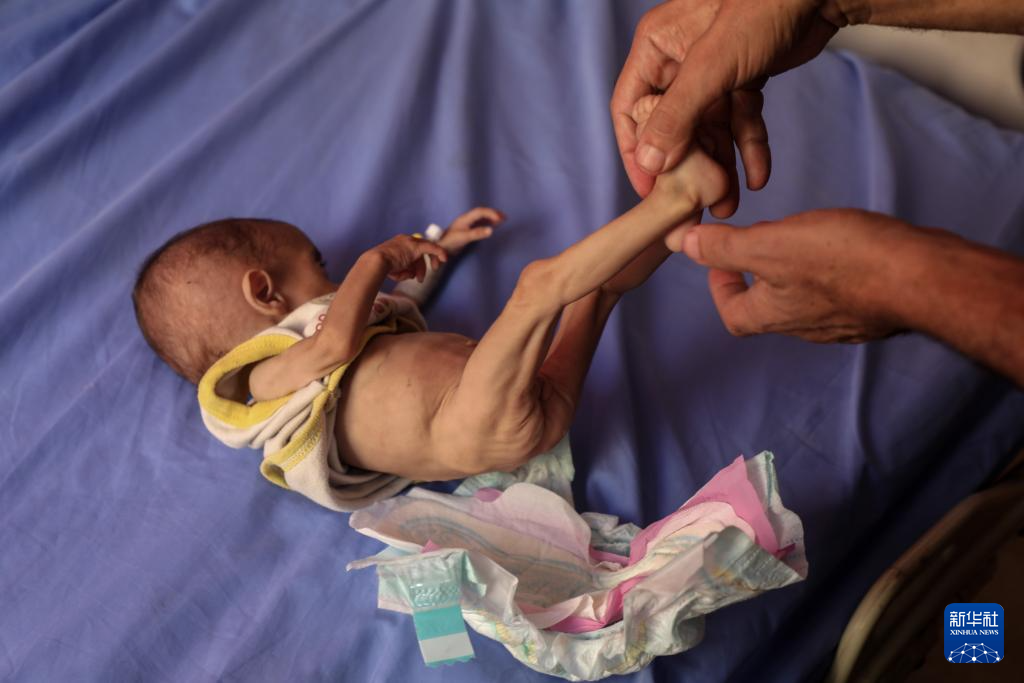 这是7月23日在加沙城一所医院里拍摄的营养不良的儿童。