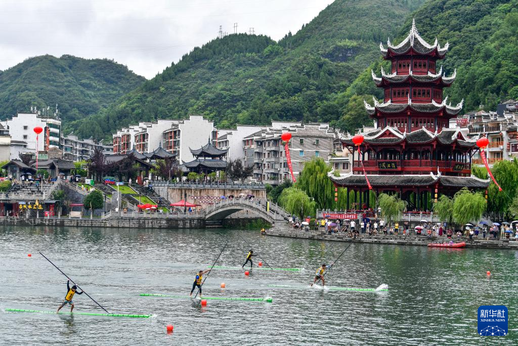 7月22日至23日,2025年民体杯全国独竹漂比赛在贵州省黔东南苗族侗族自治州镇远古城举行。来自浙江、湖北、广西、广东、贵州等省区的10支独竹漂代表队参加比赛。