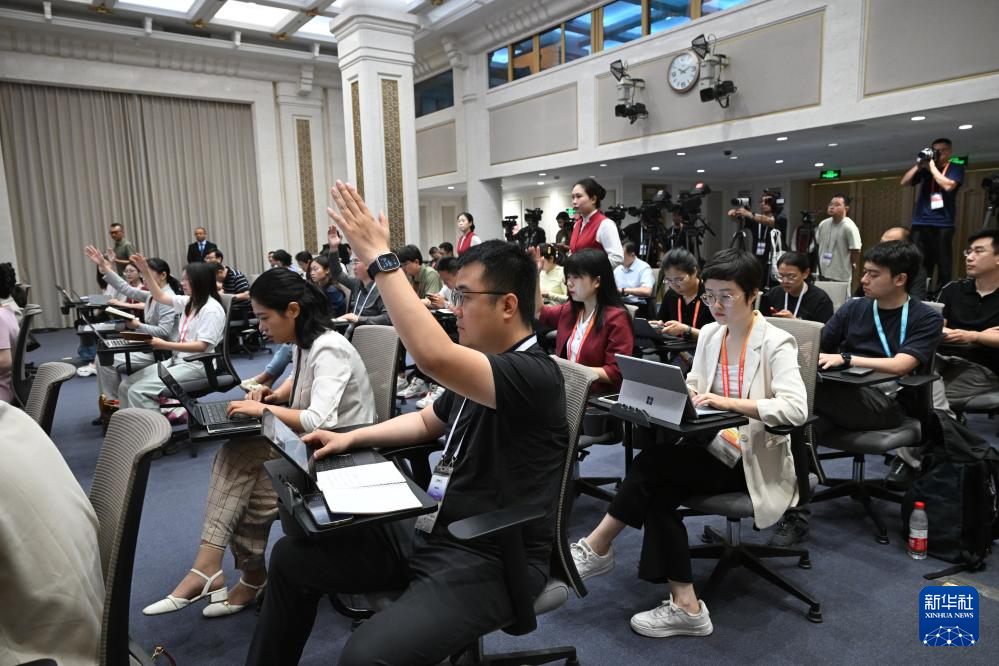 7月24日,国务院新闻办公室在北京举行“高质量完成‘十四五’规划”系列主题新闻发布会。国家医疗保障局局长章轲介绍“十四五”时期深化医保改革,服务经济社会发展有关情况,并答记者问。这是记者在发布会上举手。