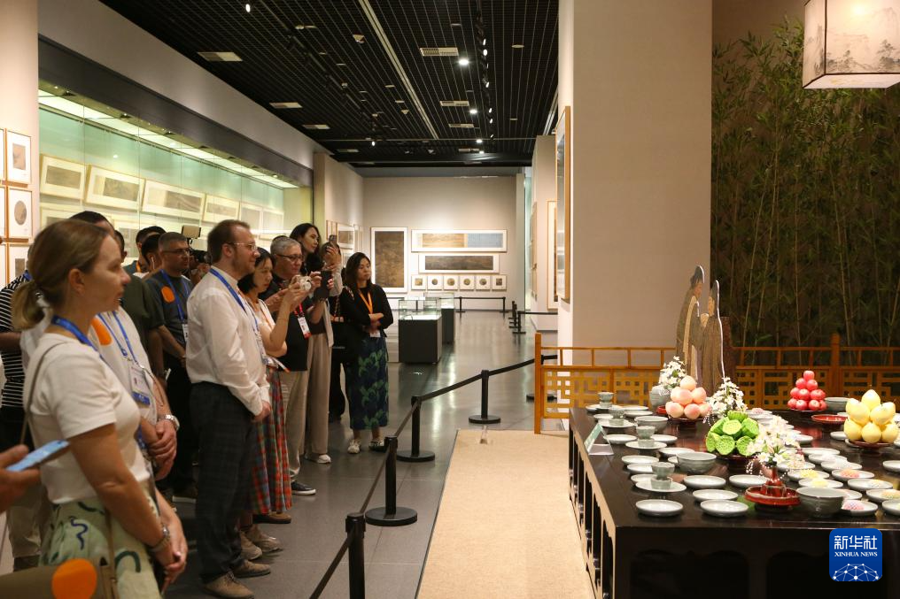 7月26日,上海合作组织媒体智库峰会与会嘉宾在开封市博物馆参观。