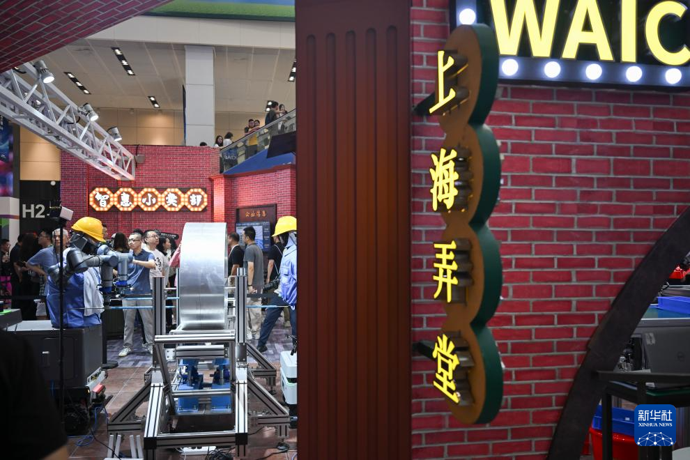 这是7月26日拍摄的装饰具有上海特色的人工智能展区。