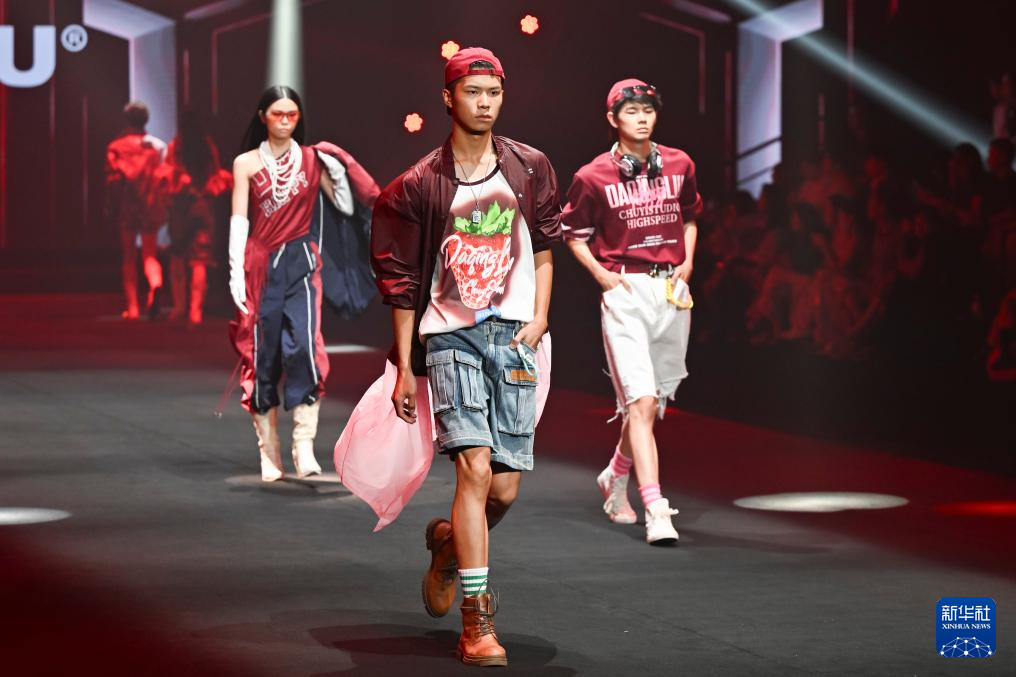 7月26日,参赛选手在第十九届中国超级模特大赛总决赛中进行时装表演。