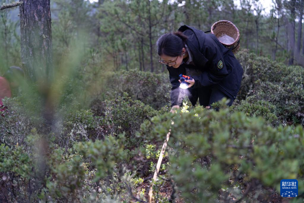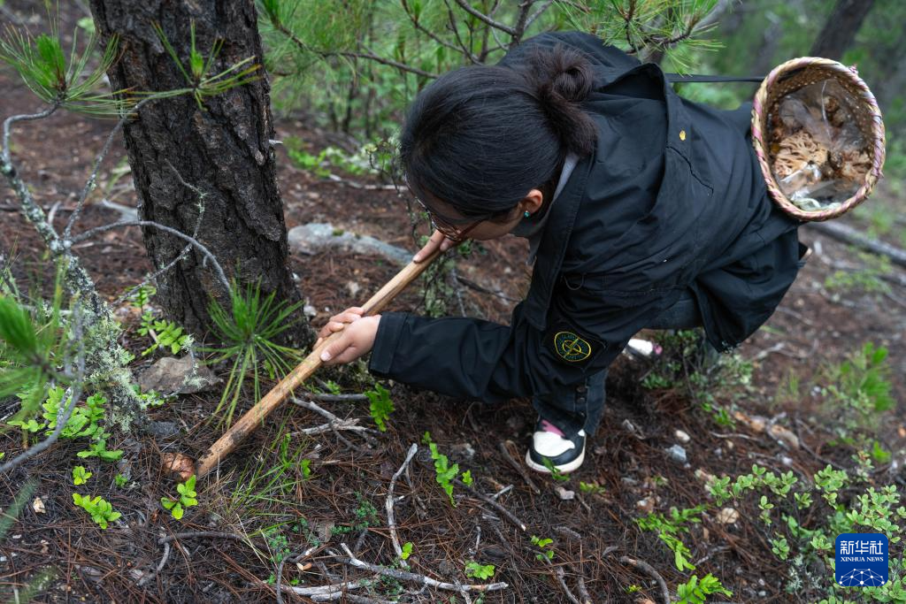 7月25日清晨,香格里拉市吉迪村村民拉姆央宗在采松茸。
