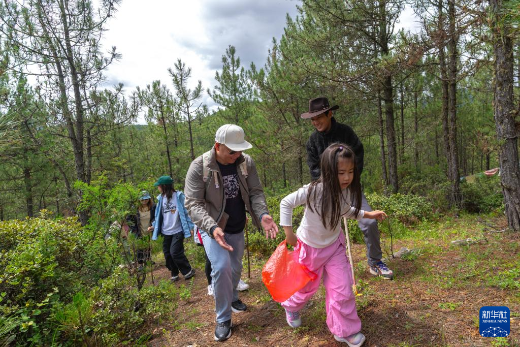 7月25日,游客在香格里拉市吉迪村体验松茸采摘。