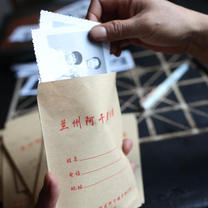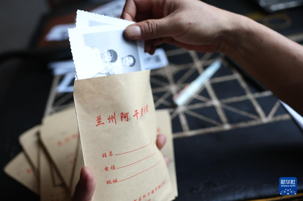 7月29日,魏伟在阿干照相馆里将成品照片装袋后准备快递寄给客人。