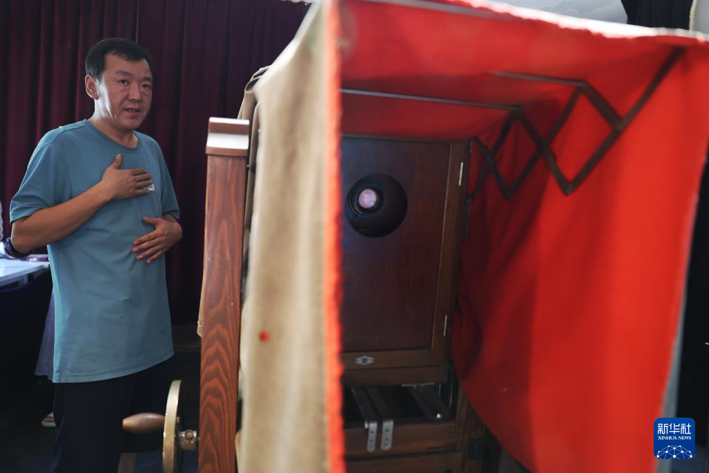 走进阿干照相馆,今年44岁的魏伟轻触着父亲留下的大画幅相机,全神贯注地为慕名而来的客人拍照,这台已使用了50多年的海鸥牌木质大画幅相机曾框取过国营煤矿工人的黝黑笑颜,凝固过老“阿干人”的童年时光,记录过劳模双眸中的自豪……如今,它仍然为来自全国各地的游客定格具有仪式感的瞬间。