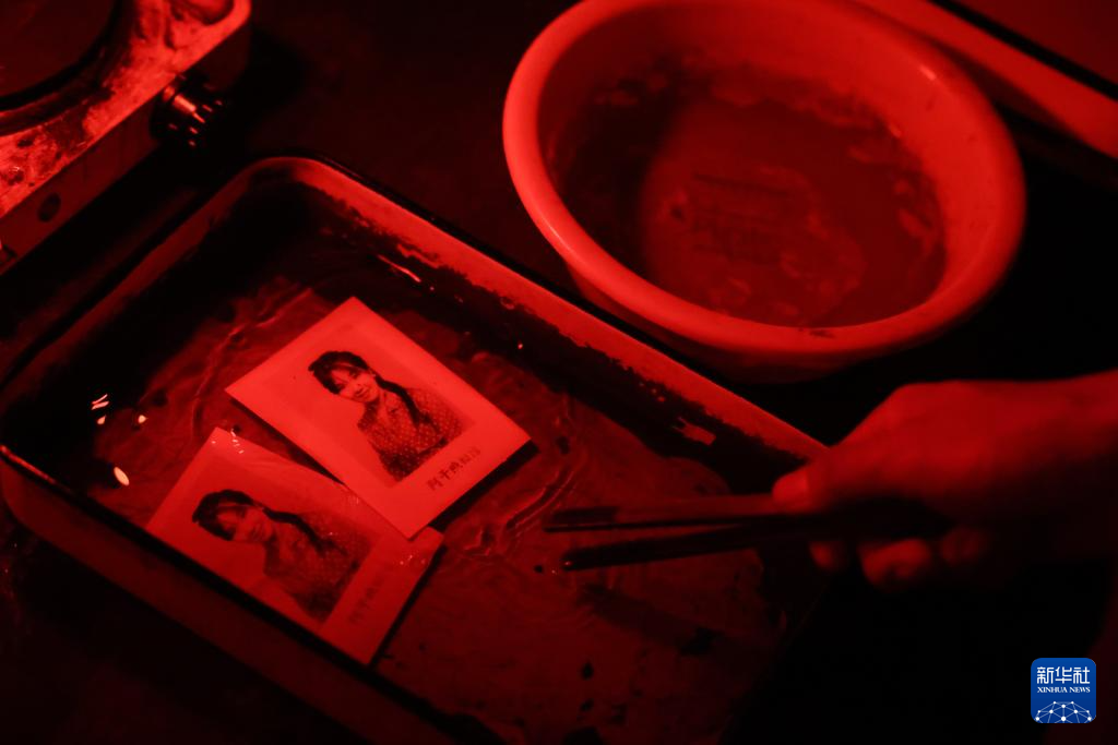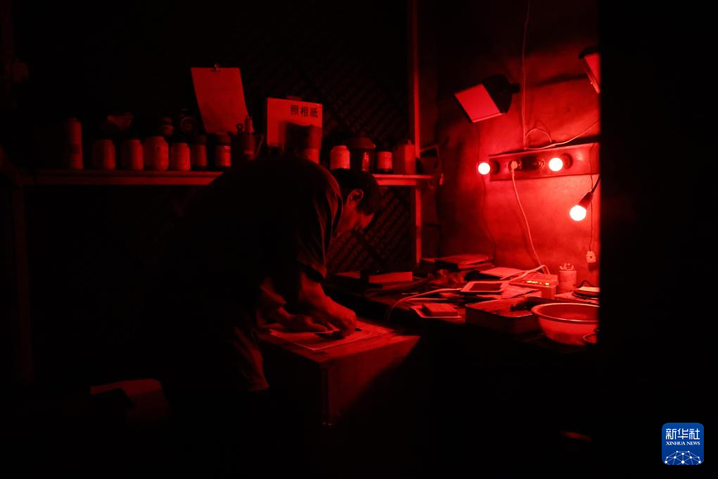 7月29日,魏伟在阿干照相馆的暗房里冲洗照片。