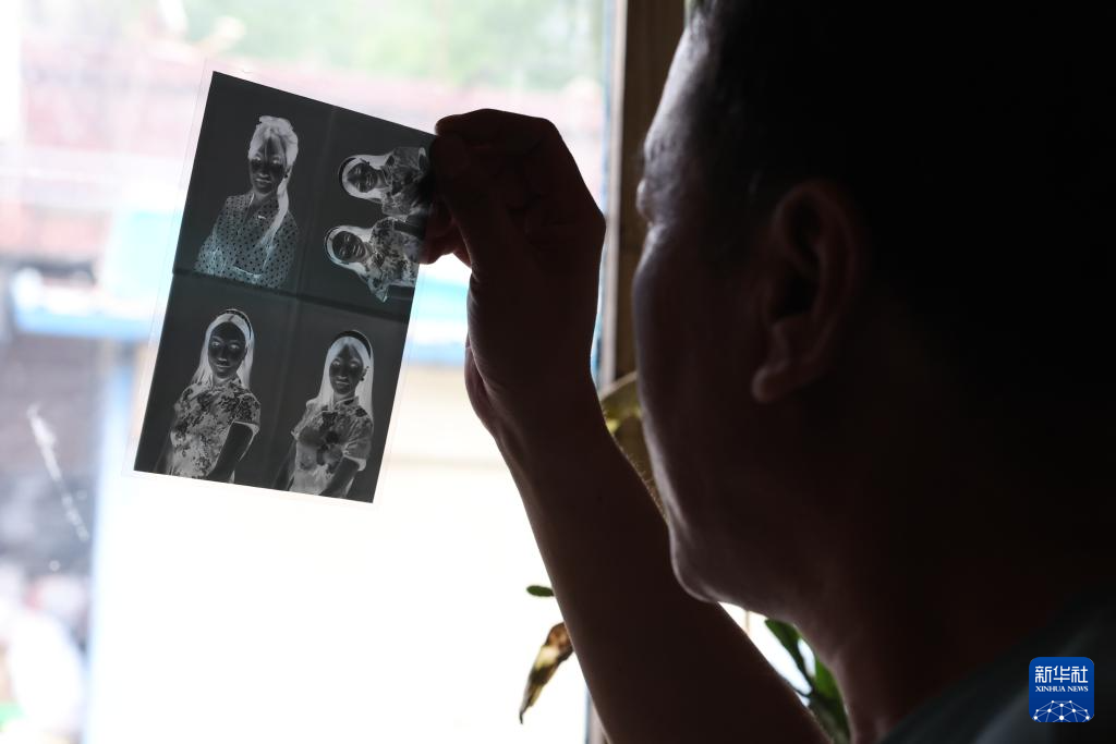 7月29日,魏伟对着阳光查看冲洗好的黑白底片。