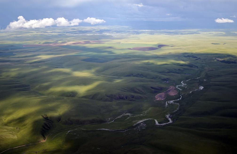 内蒙古呼伦贝尔草原上的河流(7月29日摄,手机照片)。