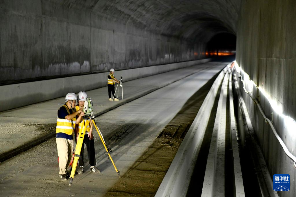 7月30日,在济滨高铁机场隧道内,中铁十局的工作人员进行全断面扫描,以获取隧道内几何形态。