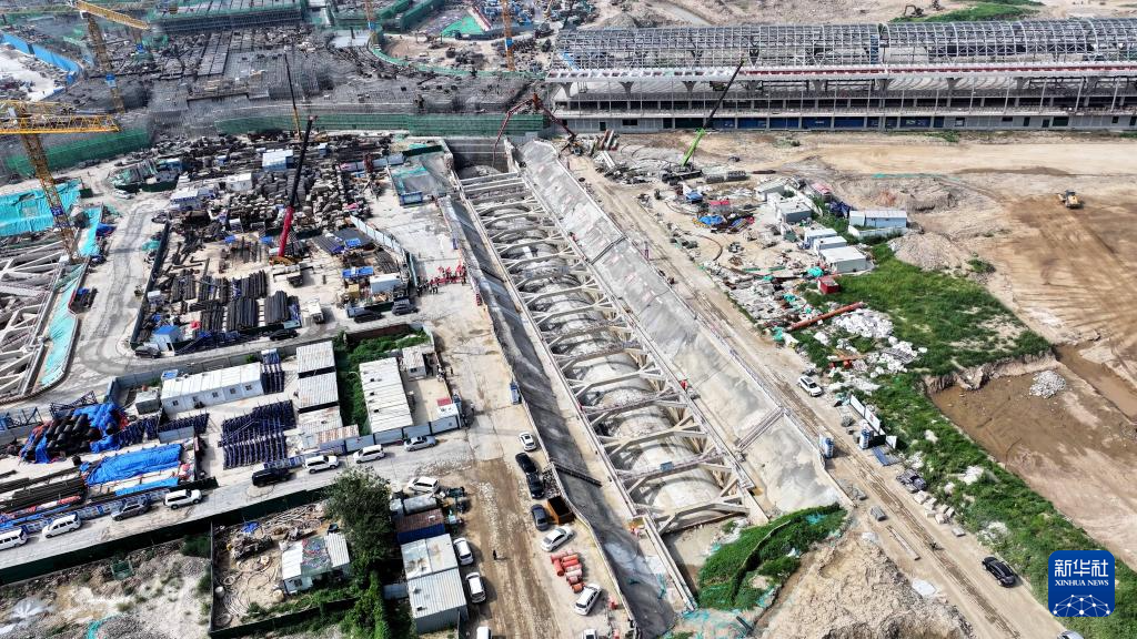 7月30日拍摄的济滨高铁机场隧道施工现场(无人机照片)。