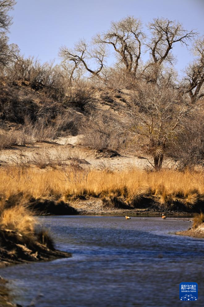 2025年4月22日在内蒙古阿拉善盟额济纳旗拍摄的胡杨林与弱水河。