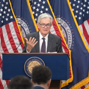 7月30日,美国联邦储备委员会主席鲍威尔在华盛顿出席记者会。