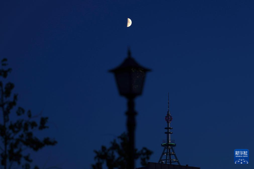 这是8月1日在黑龙江省哈尔滨市拍摄的年度最小上弦月。