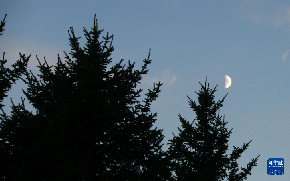 这是8月1日在黑龙江省牡丹江市拍摄的年度最小上弦月。