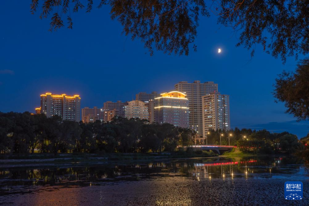 这是8月1日在黑龙江省齐齐哈尔市劳动湖景区拍摄的年度最小上弦月。