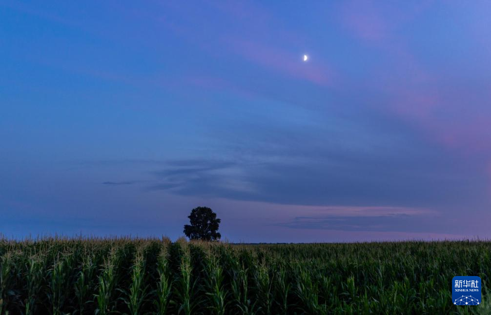 这是8月1日在黑龙江省佳木斯市富锦市拍摄的年度最小上弦月。