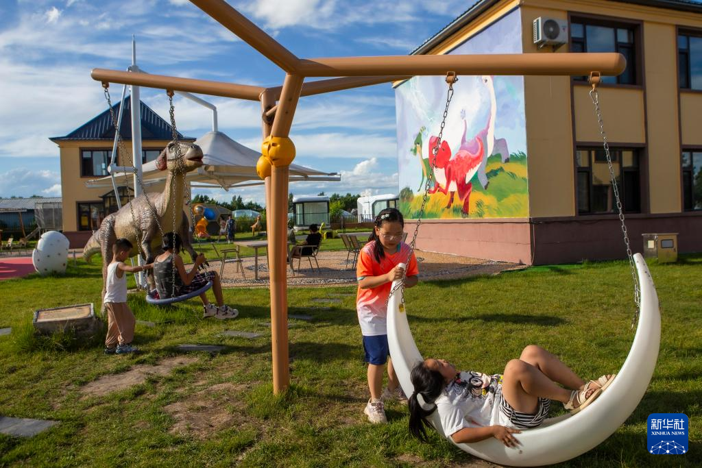 7月31日,游客在嘉荫县红光乡燎原村龙韵悠阁民宿休闲娱乐。