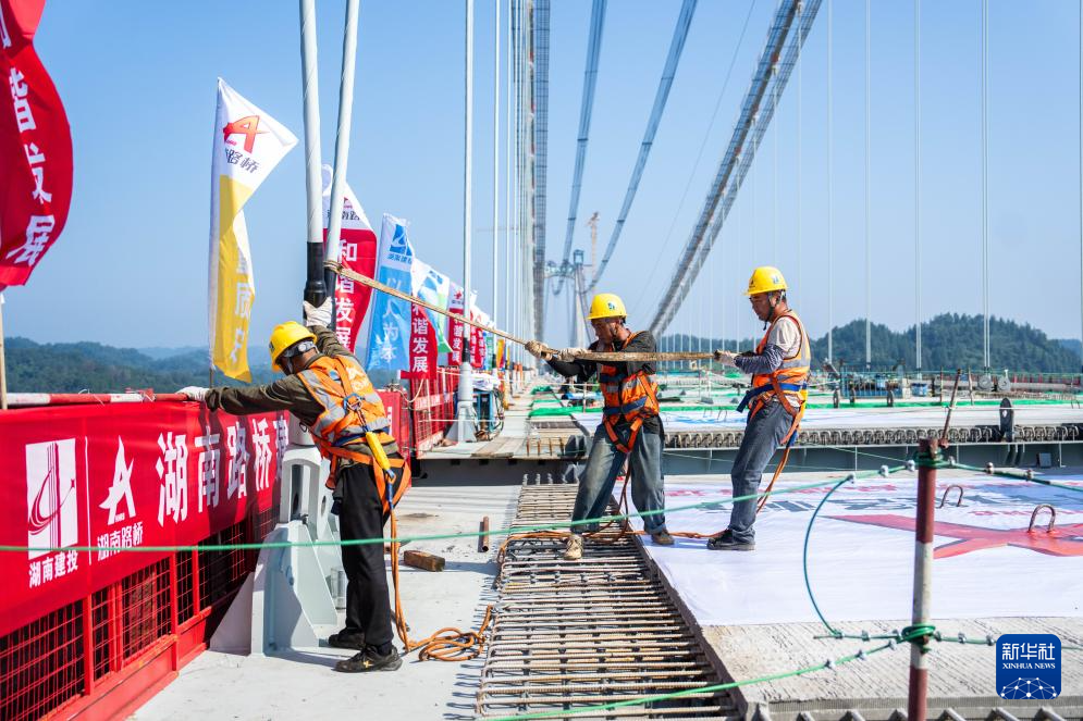 当日,随着最后一段200余吨重的钢混结合梁被缓缓提升,由湖南路桥建设集团承建的张官高速控制性工程洞庭溪沅水特大桥主桥顺利合龙,为2026年全线通车奠定了坚实基础。据了解,洞庭溪沅水特大桥位于湖南怀化市沅陵县境内,全长1707米,主桥长800米,为双塔单跨悬索桥。