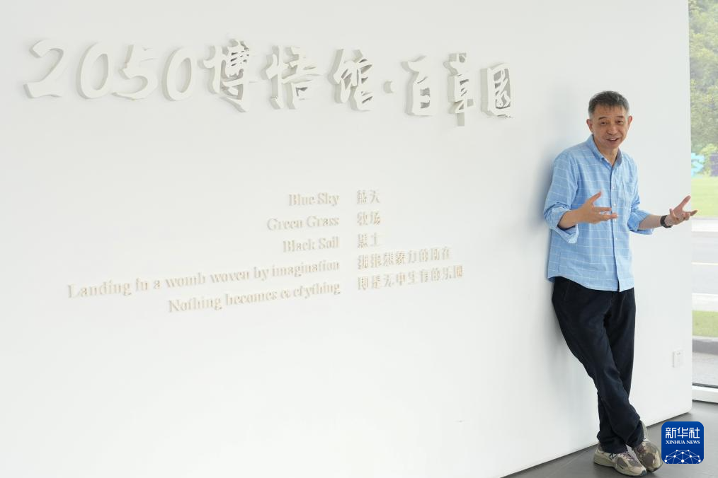 王坚在杭州云栖小镇“2050博悟馆·百草园”内留影(7月31日摄)。
