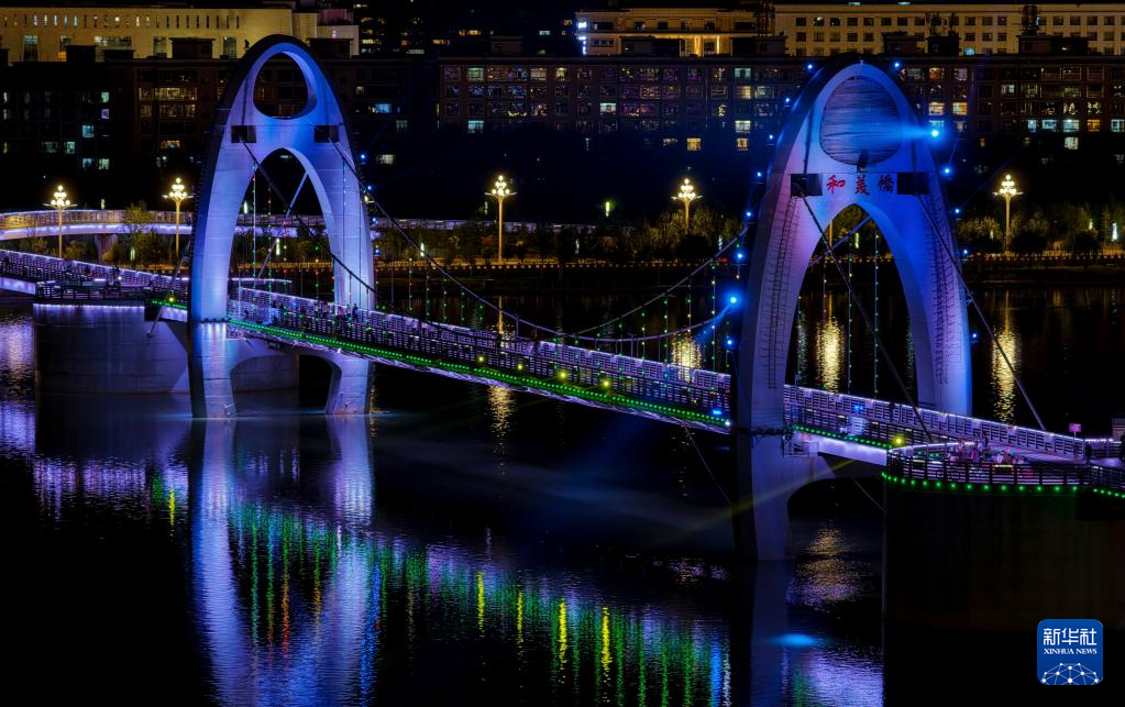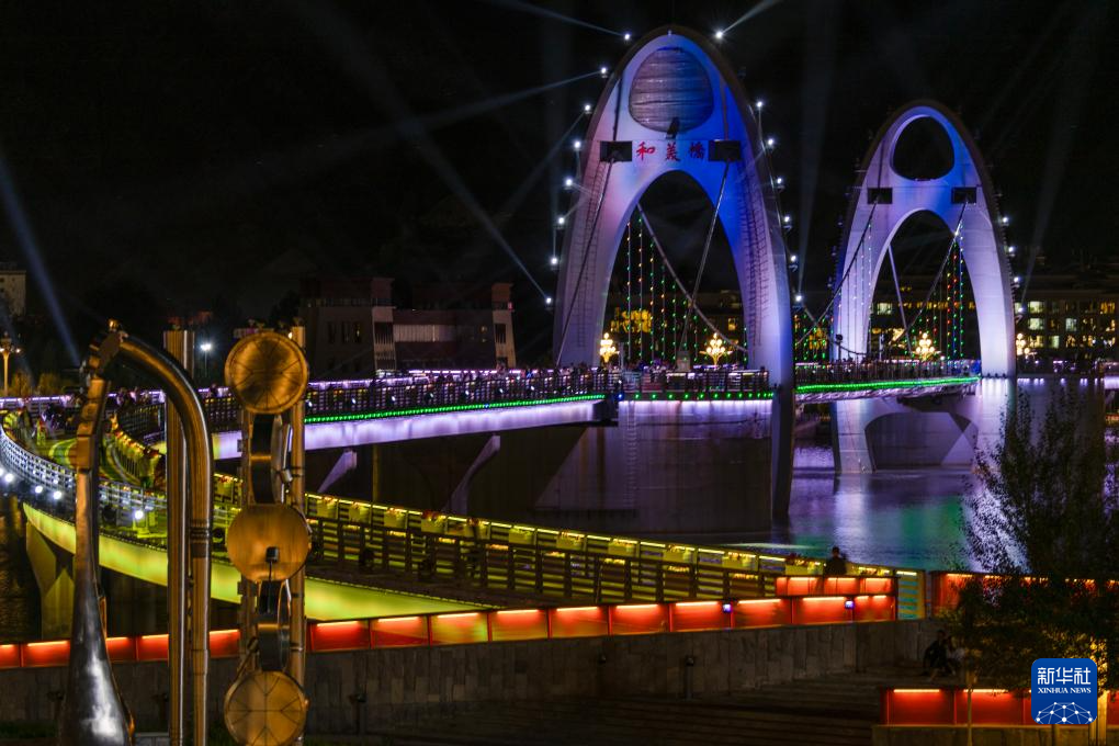这是7月30日拍摄的拉萨河夜景,由近及远分别是和美桥、柳梧大桥和连心桥(无人机拼接照片)。