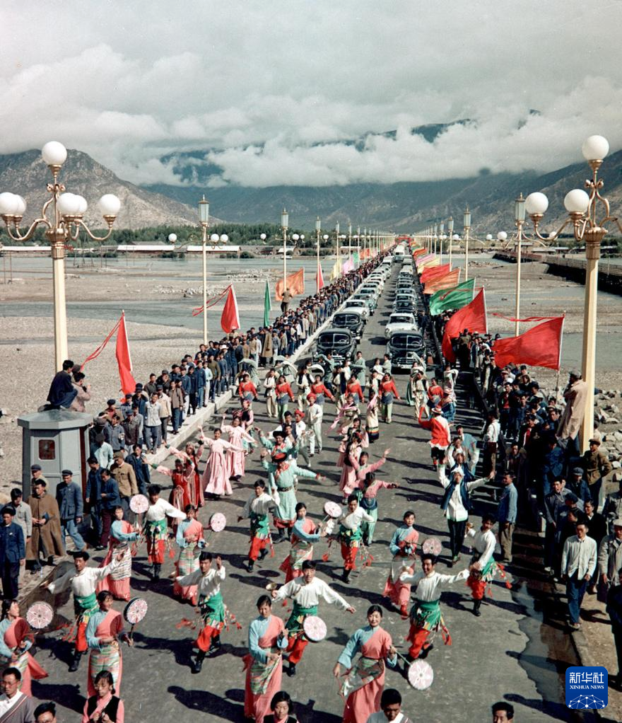 拉萨大桥落成通车典礼(1965年8月25日摄)。