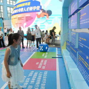 8月5日,福州市科技馆的小观众通过现场互动闯关游戏学习心智障碍相关知识。