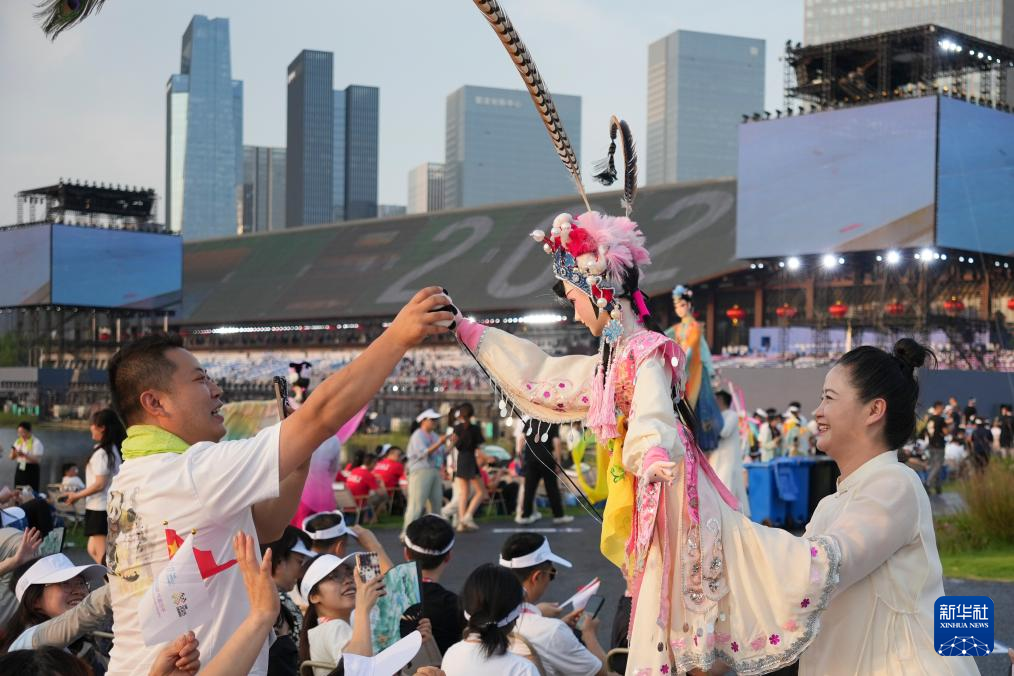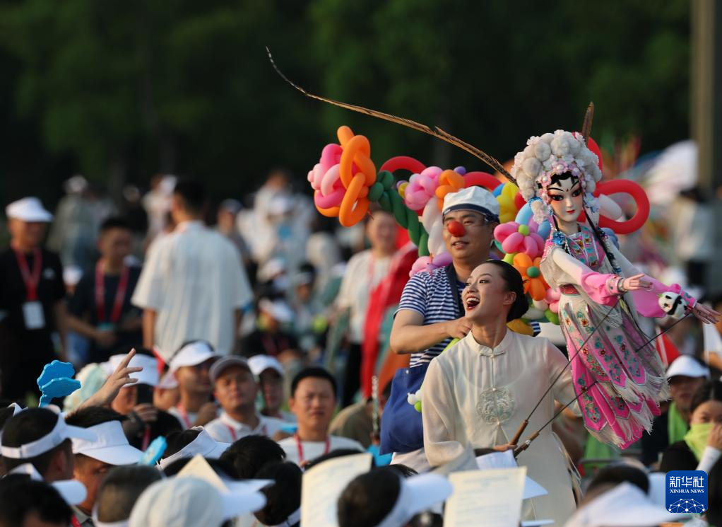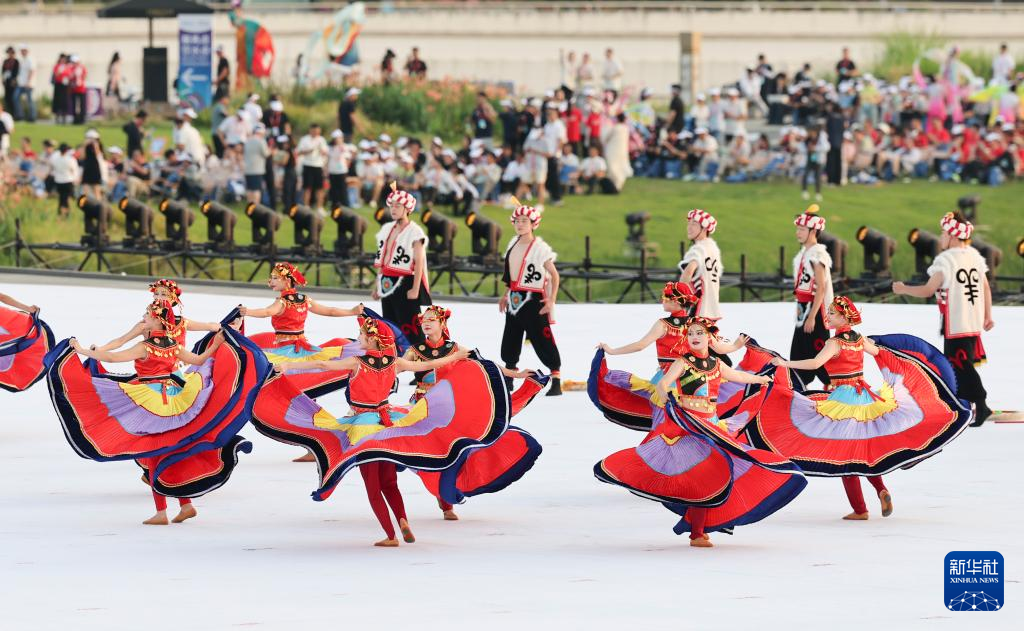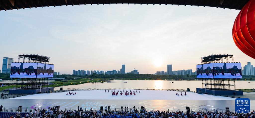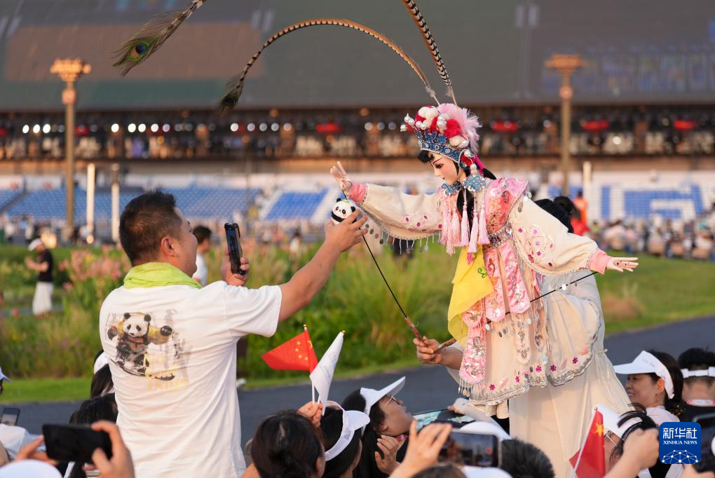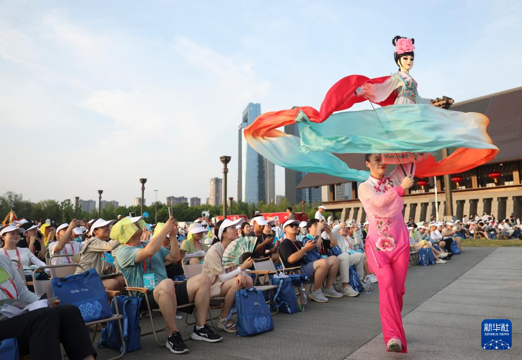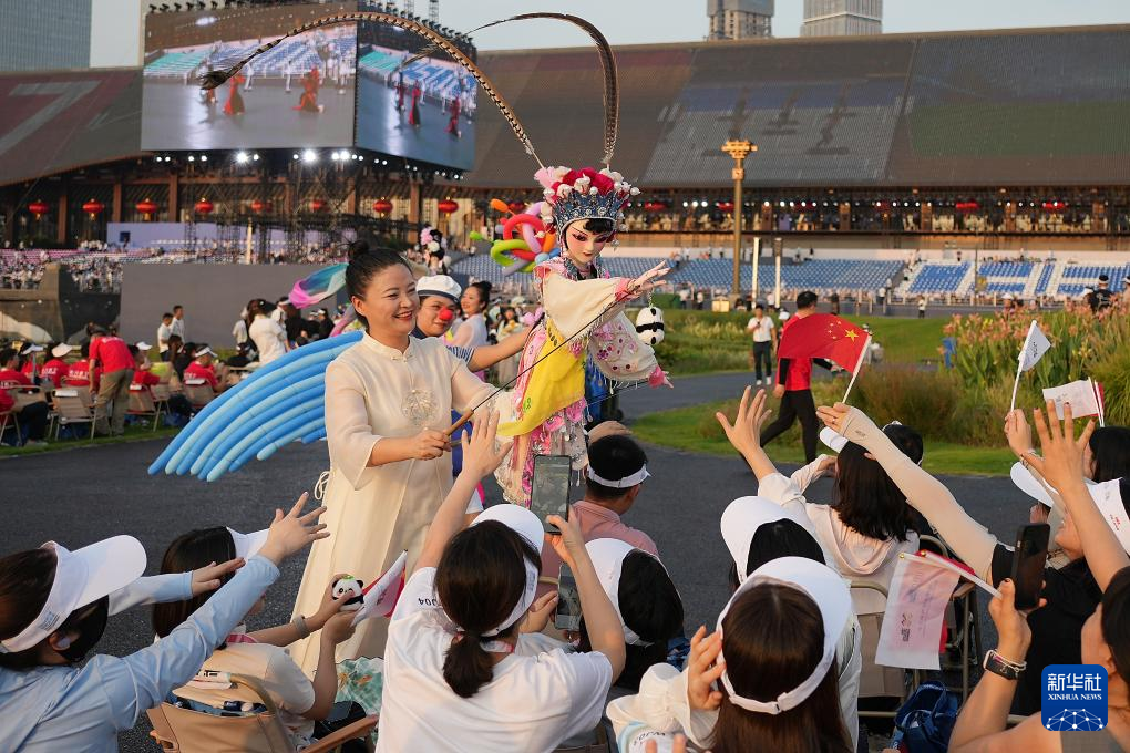 8月7日,演员在开幕式前进行暖场表演。