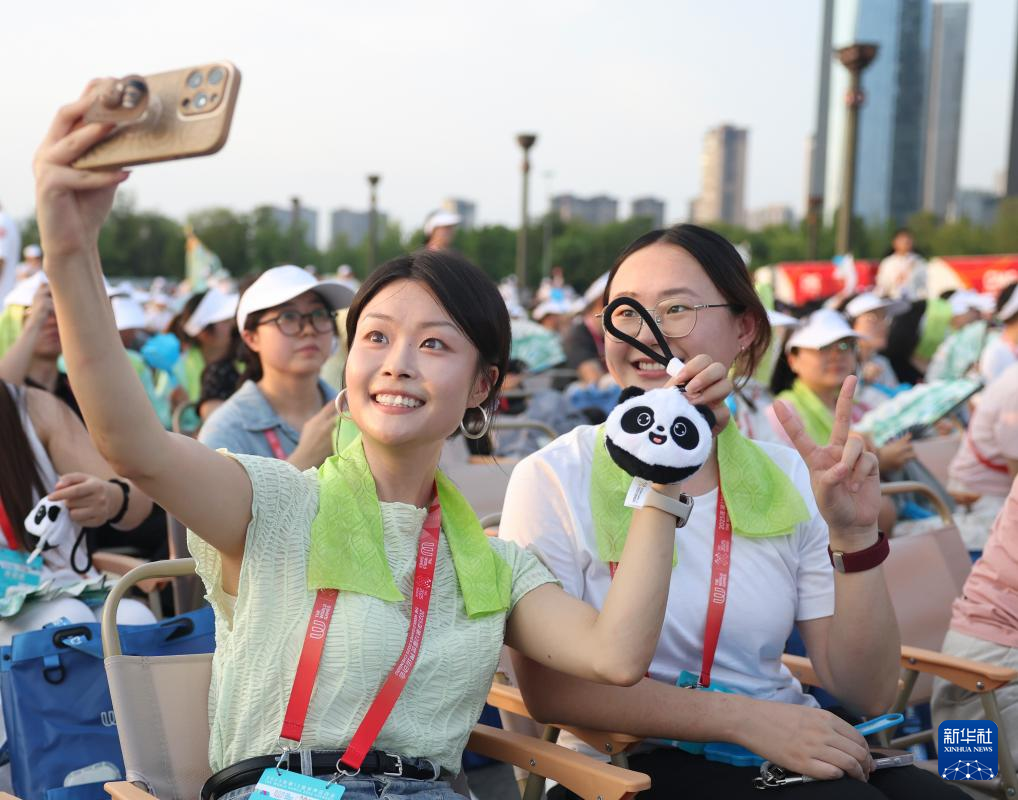 8月7日,观众在开幕式前自拍留影。