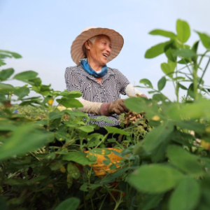 8月7日,在河北省石家庄市正定县良下村,农民忙着采收花生。