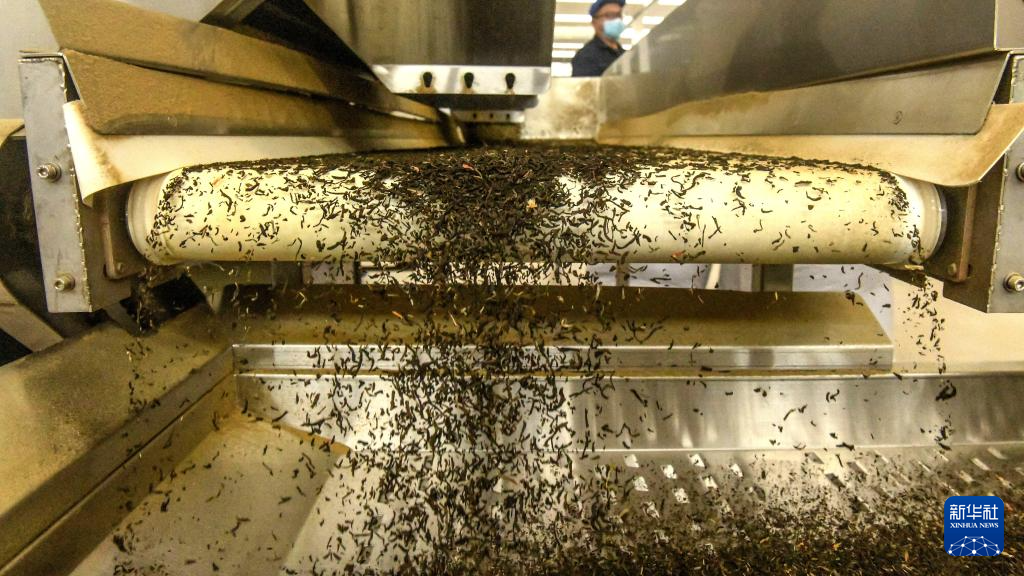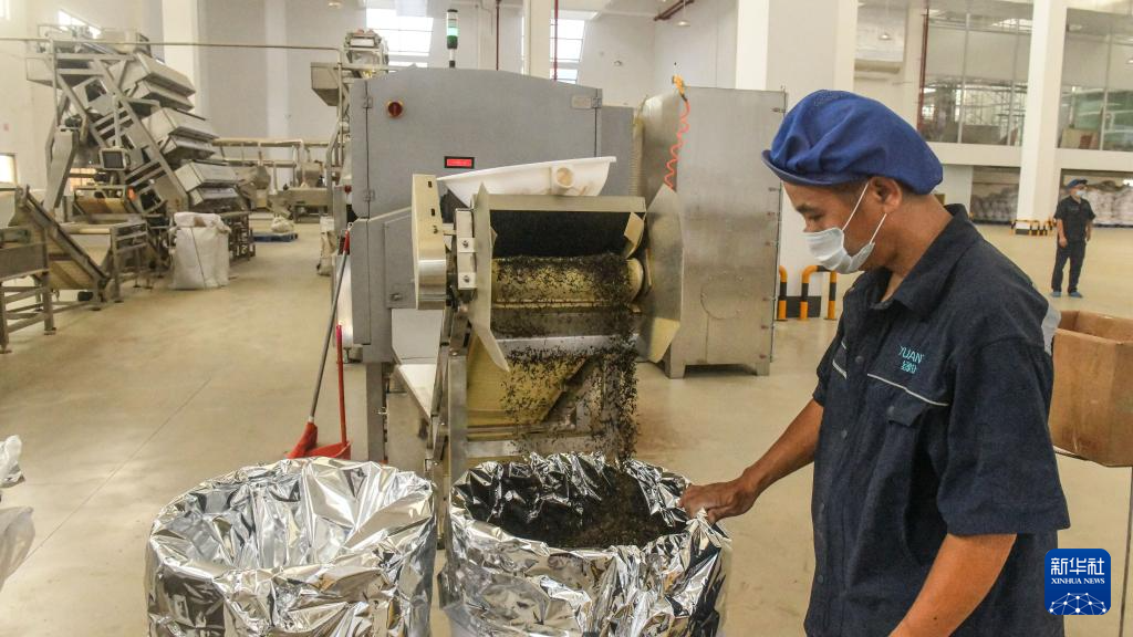7月31日,工人在广西中肯茶业有限公司生产线上生产茉莉花茶。