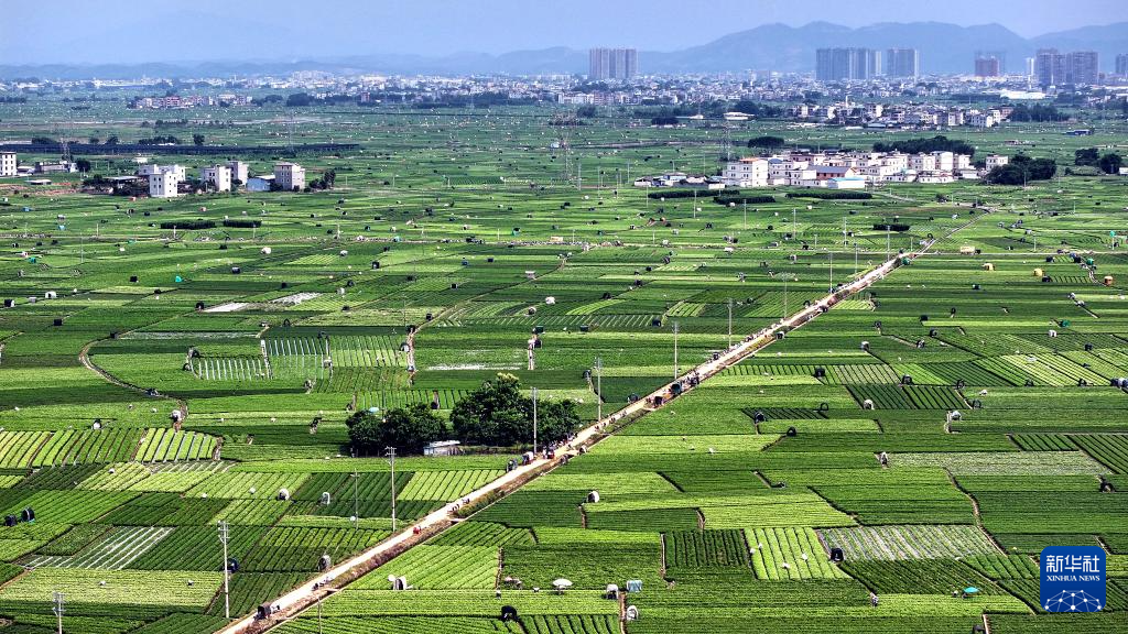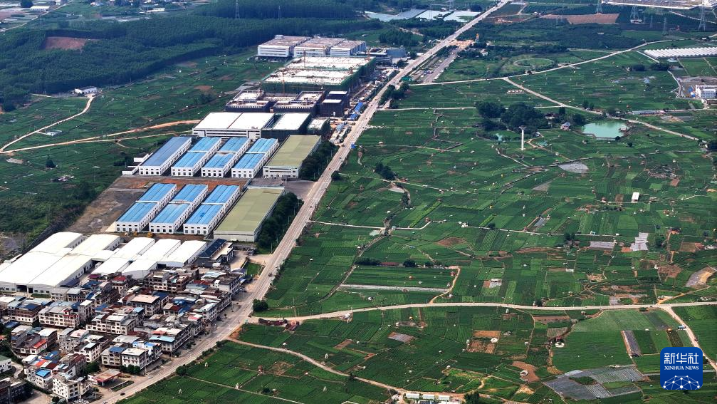 这是7月31日拍摄的横州市中华茉莉园,生产厂房与生产基地连成一片(无人机照片)。