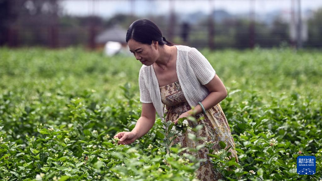 7月31日,茶农在横州市中华茉莉园采摘茉莉花。