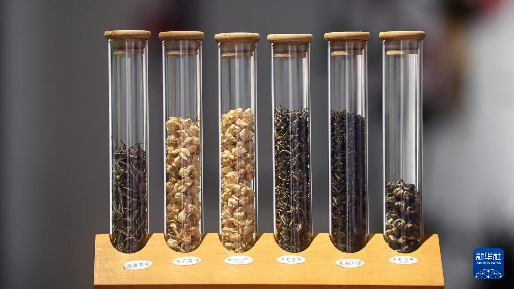 这是7月31日拍摄的莉香非遗茶馆保存的茉莉花茶茶样。