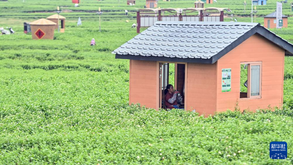7月31日,在横州市中华茉莉园,茶农劳作后在小舍中休息调整。