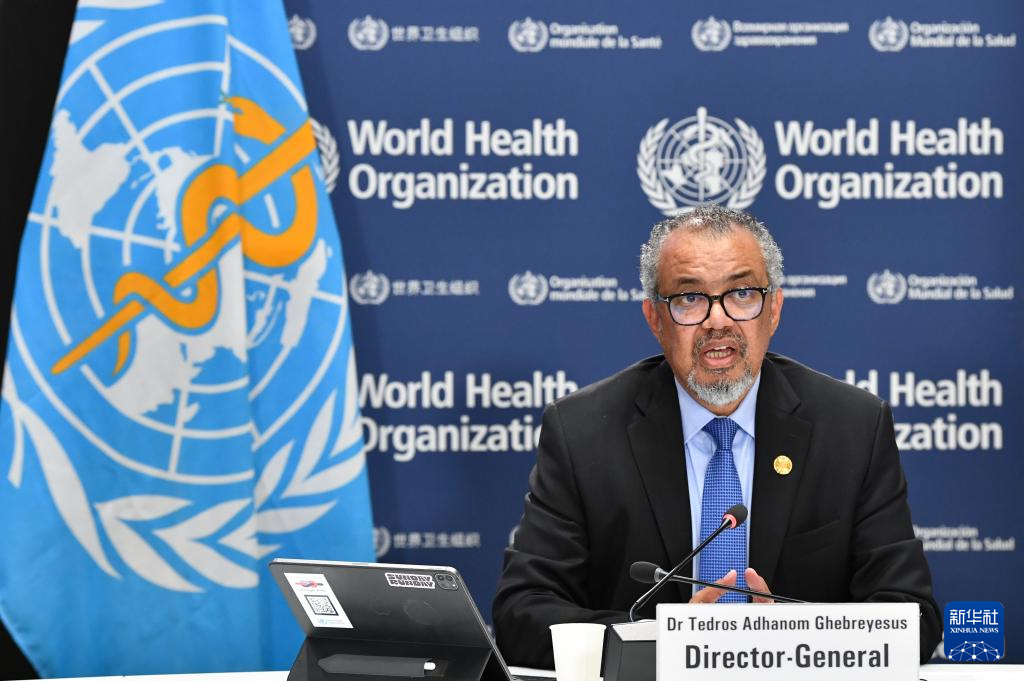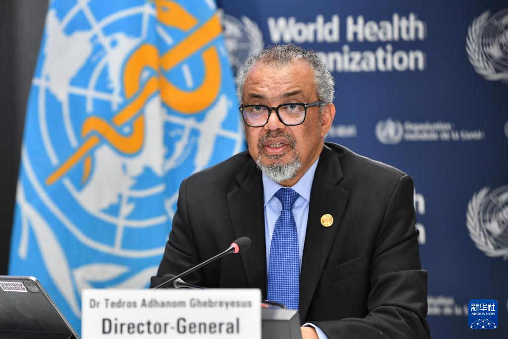 8月7日,在瑞士日内瓦世卫组织总部,世界卫生组织总干事谭德塞在记者会上讲话。