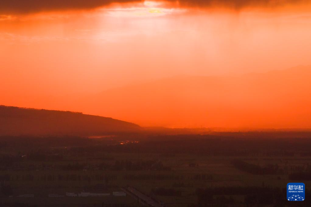 这是8月3日在新疆那拉提草原拍摄的晚霞(无人机照片)。