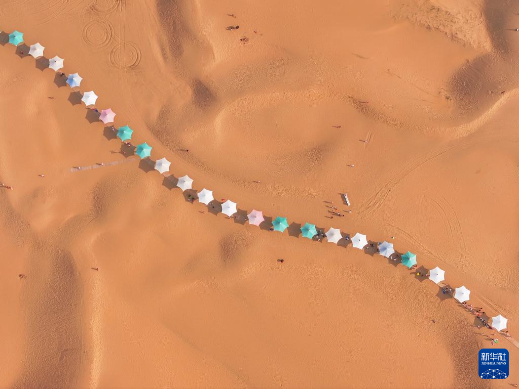 这是内蒙古鄂尔多斯达拉特旗响沙湾景区(8月1日摄,无人机照片)。