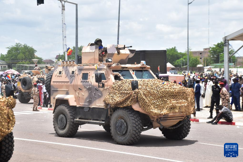 8月11日,在乍得首都恩贾梅纳举行的庆祝独立65周年活动上,装甲车辆列队行进。