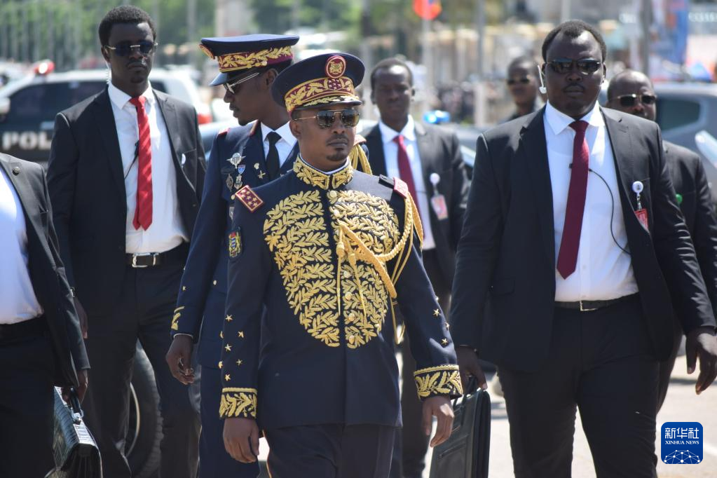8月11日,乍得总统穆罕默德·代比(前)出席在首都恩贾梅纳举行的庆祝独立65周年活动。