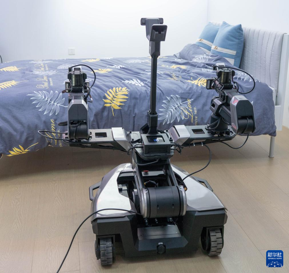 世界机器人大会上展出的一款家务助理机器人(8月8日摄)。