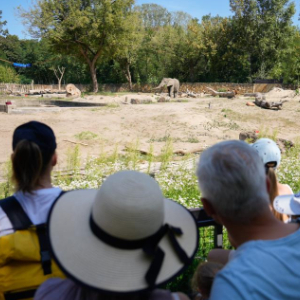 8月12日,游客在波兰华沙动物园观看大象。